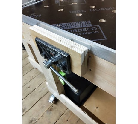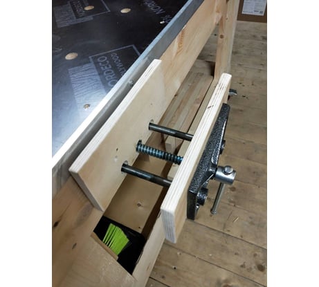Установил в столярный верстак. Если нужно устанавливать заподлицо с кромкой верстака то переднюю губку придется врезать.Если не принципиально просто приложил и прикрутил. На губки прикрутил накладки из фанеры. Зажимает прекрасно. Сначала все хотел покупать большего размера, но этих вполне хватает для работы с двухметровыми пятидесятыми досками.