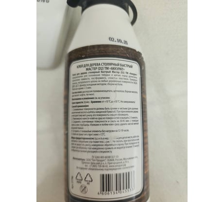 Столярный клей для дерева Аккурат Мастер быстрый D2 500мл hk45540 применяется для склеивания заготовок из твердых и мягких пород древесины, а также для нанесения ламината, бумажных пленок, натурального шпона на поверхности из дерева, МДФ, ДВП, ДСП.