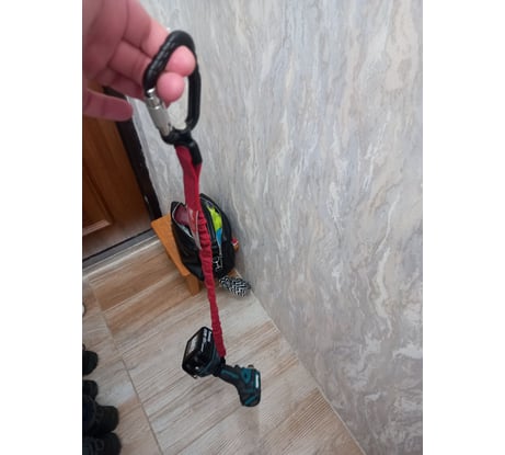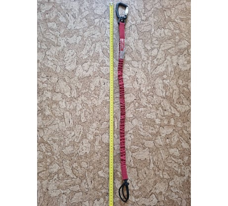 Цена, естественно. Длина троса 70 см в спокойном состоянии, если растянуть то 85 см получается. Хотелось бы ещё чуть подлиньше, на вытянутой руке не поработать, но всегда можно перекинуть карабин на более высокую точку☝️