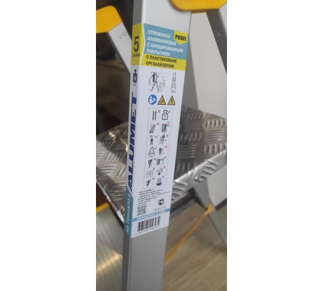 Стремянка алюминиевая Алюмет с анодированным покрытием профессиональная, широкими ступенями 5 ступеней и органайзером. Серия AS705AK015 4