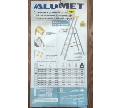 Стремянка алюминиевая Алюмет с анодированным покрытием профессиональная, широкими ступенями 5 ступеней и органайзером. Серия AS705AK015 2