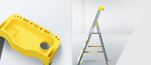 Тетива, площадка и ступени стремянки изготовлены из высокопрочного алюминиевого сплава (ГОСТ 22233). Задняя и передняя ноги выполнены из анодированного профиля. Башмаки, кронштейн и органайзер изготовлены из высокопрочного пластика.