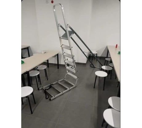 Стремянки, имеющие больше 5-ти ступеней оборудованы стропами, дополнительно ограничивающими раскрытие стремянки.