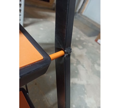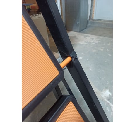 В эксплуатации 2 месяца. Использовалась стремянка время от времени, при необходимости. Не выдержала "фольгированная" опора. На фото всё четко видно.
