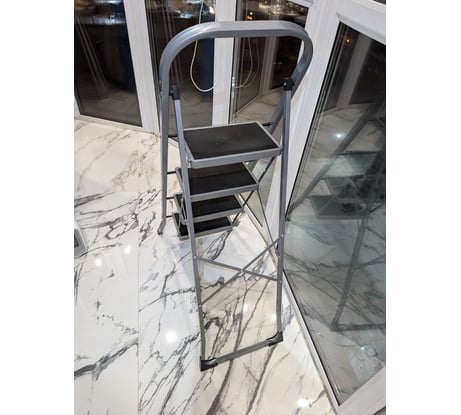 Отличная стремянка, устойчивая, с широкими ступенями. Легко раскладывается и собирается, в собранном виде занимает мало места. Покупали лестницу для использования в квартире. Покупкой довольна.