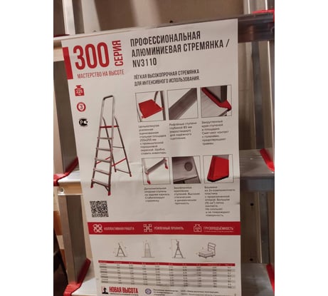 Профессиональная стремянка Новая Высота 6 ступеней, Max нагр. 225 кг, 2К башмаки, 3110106