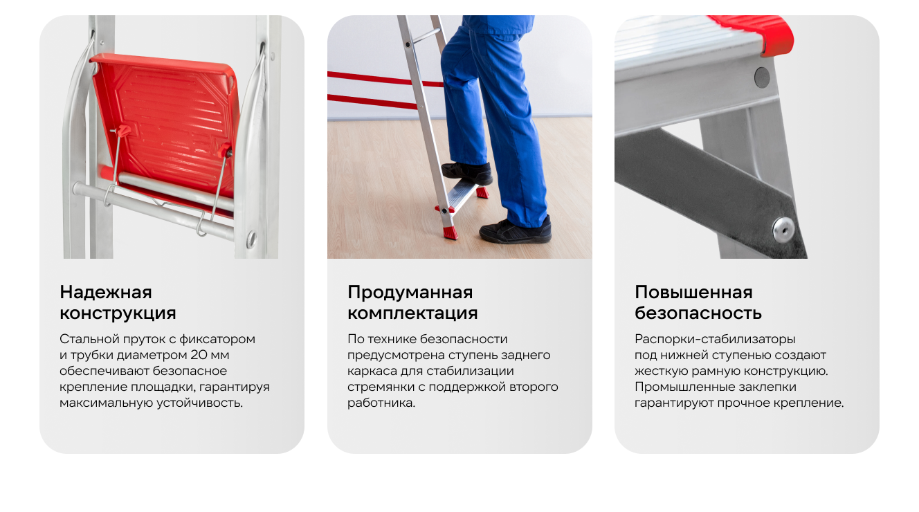 - Профессиональная стремянка рассчитана на частую эксплуатацию;