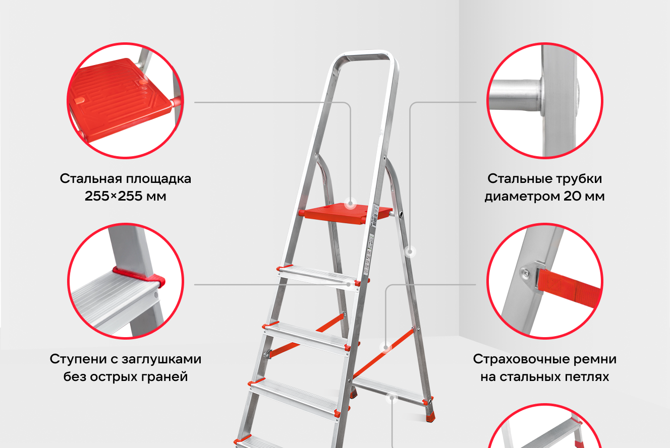 - Профессиональная стремянка рассчитана на частую эксплуатацию;