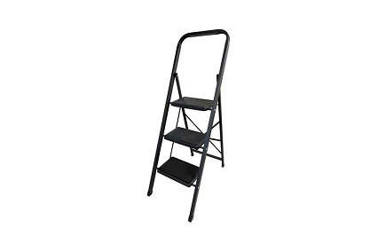 Стремянка стальная с широкими ступенями с противоскользящими накладками- представляет собой свободностоящую переносную лестницу, сужающуюся к верху, имеющую одну сторону для подъема, и оборудованную дугой безопасности, конструктивно выполненной совместно со стороной подъема.