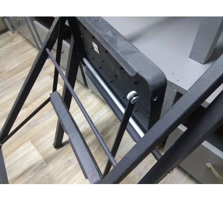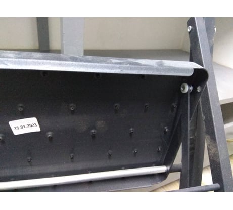 Сбоку у новой стремянки чуть слезла чёрная краска, блестит сталь