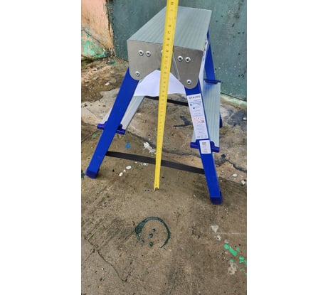 Верхняя рабочая площадка образуется только в рабочем положении из двух верхних ступенек двух составных частей стремянки.