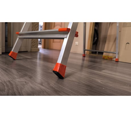 Шершавые ступени предотвращают скольжение, а широкие площадки удобны для ног. Особенно порадовал продуманный механизм складывания – одной рукой управляюсь. За полгода использования никаких нареканий, рекомендую для квартиры и дачи!