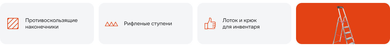 Шершавые ступени предотвращают скольжение, а широкие площадки удобны для ног. Особенно порадовал продуманный механизм складывания – одной рукой управляюсь. За полгода использования никаких нареканий, рекомендую для квартиры и дачи!