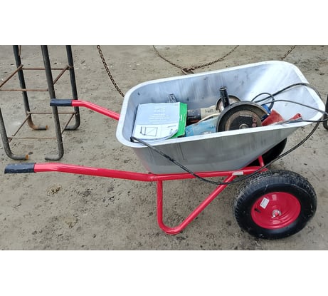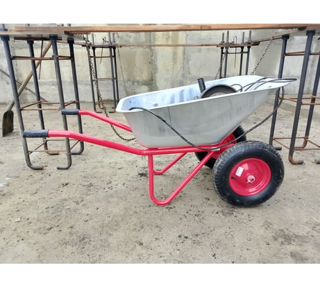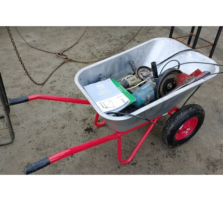 Строительная двухколесная усиленная тачка Variant вместительность 110 л, грузоподъемность 180кг 12110 предназначена для перевозки тяжелых грузов – земли, песка, раствора, также камней или мусора. Кузов тачки выполнен из толстого оцинкованного стального листа, борта завальцованы. Усиленная рама состоит из двух частей. Собрать тачку – быстро и легко. Два надувных колеса с камерой (380 мм) на подшипниках позволяют легко катить тачку даже по неровной поверхности.