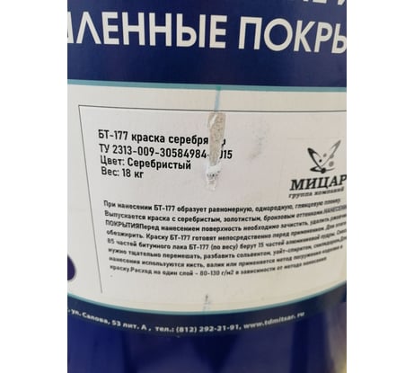 Отзывы о строительной краске Мицар БТ-177 серебрянка, 18 кг 00000002267