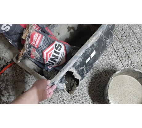 Брал для стяжки, лопнуло дно, заклеил степлером и термоклеем, подложил снизу кусок ДСП, после все ок стало, поверхность на чем стоит должна быть ровной