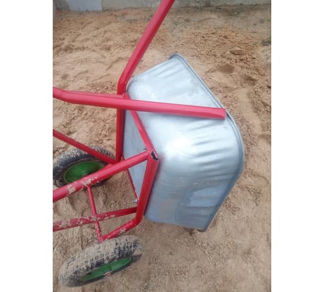 Выдержала около 60-70 рейсов с песком, отвалилась ручка, металл как фольга,корыто согнулось после 2-3 опрокидывания