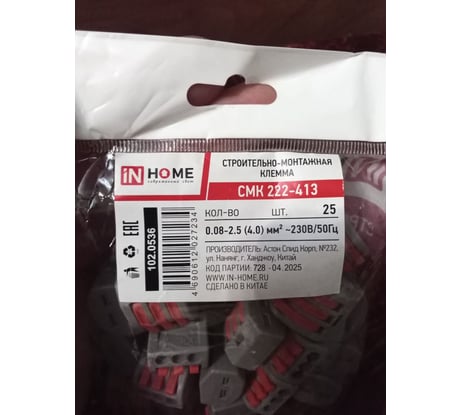 Вопросы и ответы о строительно-монтажной клемме IN HOME СМК 222-412 4690612027319