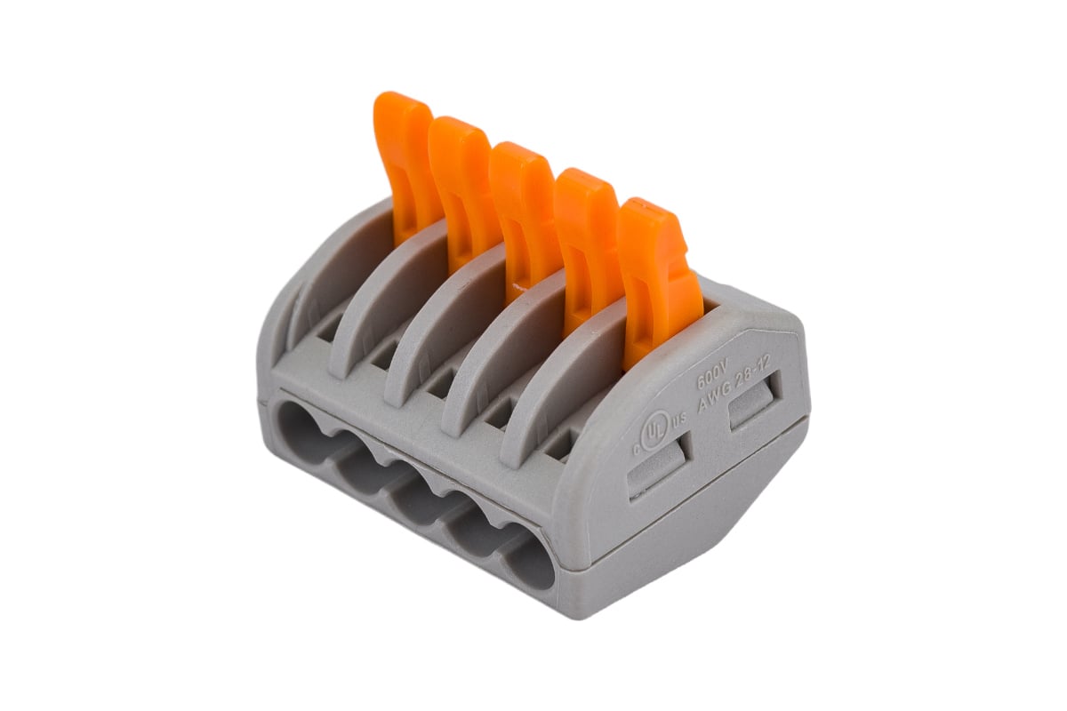 Строительно-монтажная клемма (СМК) ЭРА NO-222-24 модель 415, с рычагом, 5 отверстий, 0.08-2.5мм2, 2 штуки Б0033398