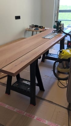 Очень удобные и устойчевые. Вставал сверху на один козел, вообще не шатается. И не было ощущения, что все развалиться сейчас, монументальная штука. Есть пазы под брус 50мм толщиной. В моем случае ставил брус 100/50 и спокойно обрабатывали сендвич 2,7м на 2,7м