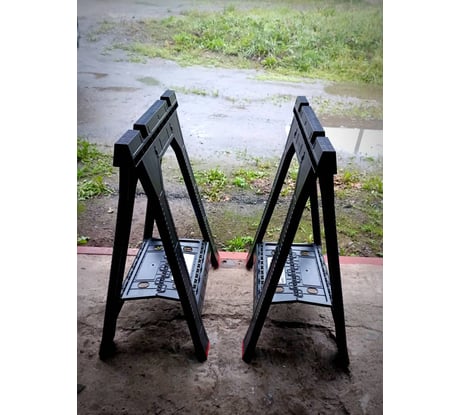 Это... такой клон стенливских козел. Меньше, хлипче. Этакий вариант лайт. Я выложил фотку рядом со стенливскими. Использовать как основу для помоста не рекомендую. Я попробовал на них пилить старые обрезки досок и обломки полет на дрова - низко, приходится наклоняться и пояснице это не понравилось. Но в целом неплохо и недорого.