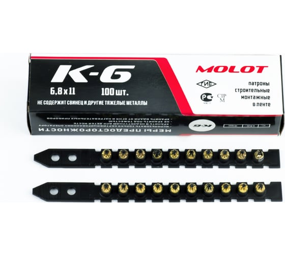 Строительные монтажные патроны в ленте MOLOT К-6 6,8x11 мм, черные 100 шт 68140107