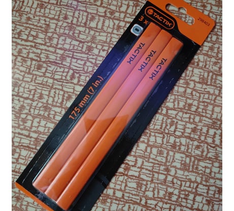 Строительный карандаш TACTIX плоский, 175 мм, комплект из 3-х штук 298403 предназначен для быстрого и удобного нанесения разметки на детали, заготовки и другие рабочие поверхности. Карандаш имеет средне-жесткий грифель. Модель имеет эргономичный корпус для удобной работы.
