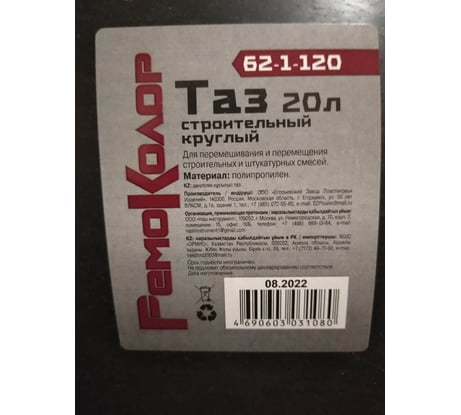 - РемоКолор 20 л 62-1-120 изготовлен из сополимер полиэтилена - ударопрочный и морозоустойчивый материал, который не ломается и не трескается.