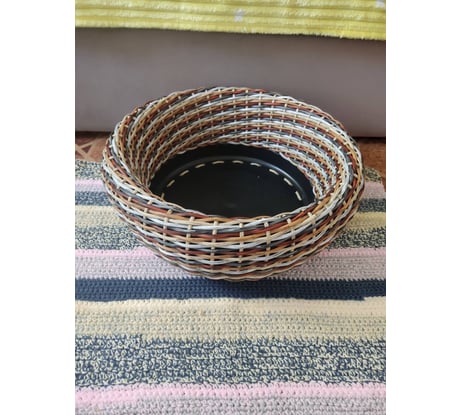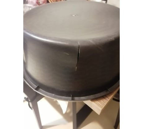 С виду крепкий,будет использоваться в изготовлении кашпо. размер верха с бортом 465,без борта 420, дно 365 ,глубина 170
