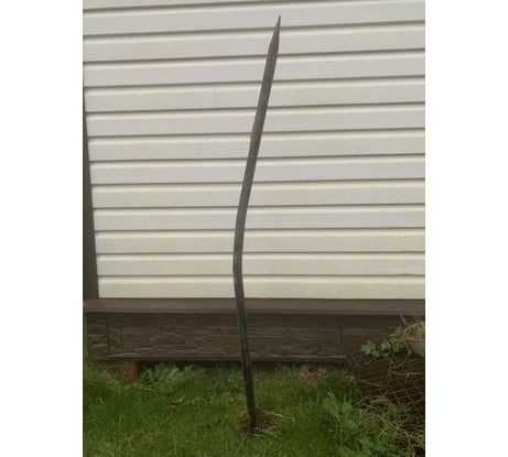 Сталь никакая, лом гнется хоть и довольно толстый. Сейчас выглядит как кишка. Использовался на даче, при копке и выкорчевывании пней, перевалки больших камней.
