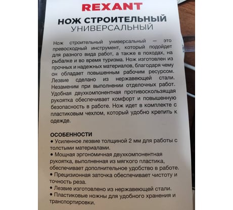 Технические характеристики ножа REXANT 12-4923