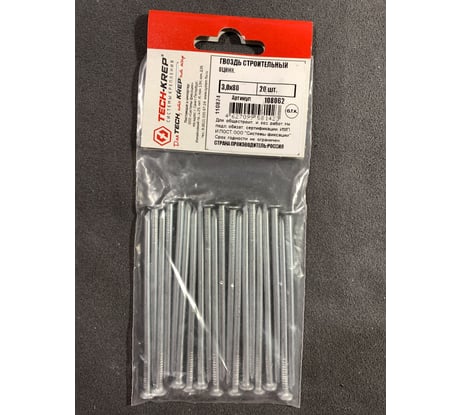 Строительный оцинкованный гвоздь Tech-Krep/Zitar 3.0х80, 20шт, пакет 108062 На страницу товара47 ₽
