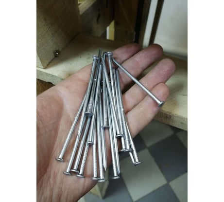Острые, ровные оцинкованные гвозди с круглой не рифлённой шляпкой.