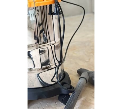 Пылесосит все подряд: мелкий мусор, пыль, опилки — мощность приличная. Фильтрация на уровне, фильтр легко чистится. Колёса проходимые, шланг длинный — удобно таскать на стройке.