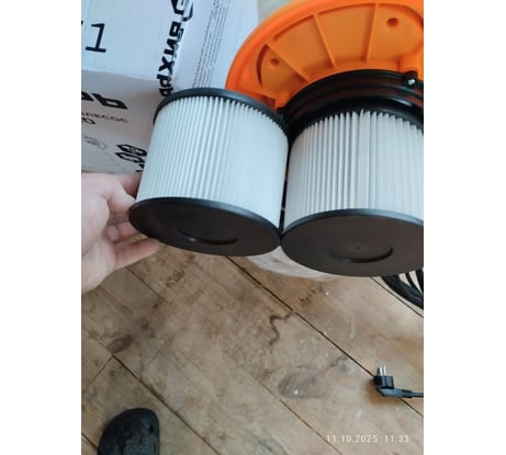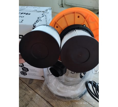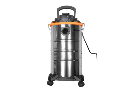 Строительный пылесос работает от сети 220-230В~50 Гц, оснащен кабелем длиной 5 м, длина гофрированного шланга составляет 3 м. Сухая уборка осуществляется с использованием фильтра HEPA. При этом крупные частицы собираются непосредственно в баке объемом 30 л. При необходимости удаления мелкого мусора, пыли сбор производится в специальный мешок во избежание засорения двигателя. Строительный пылесос может работать в режиме всасывания воды, при работе необходимо использовать поролоновый фильтр. При помощи насадок разного вида можно производить уборку в любых труднодоступных местах.