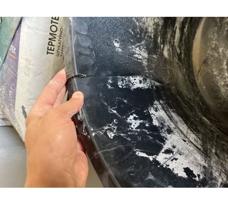 Сразу поцарапался изнутри после применения строительного миксера для замеса наливного пола