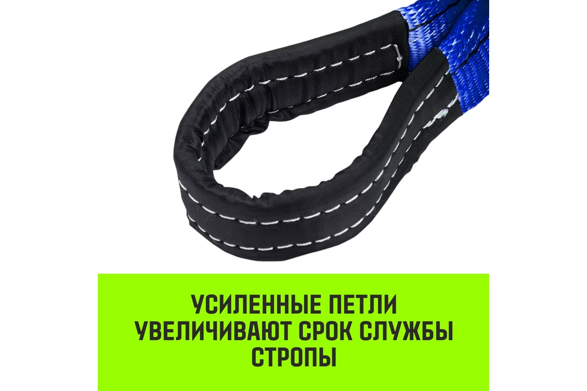 Петли строп меньше перетираются и дольше служат за счет дополнительного чехла, усиливающего эксплуатационные свойства ткани.