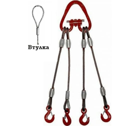 Строп канатный четырехветвевой Тельфер.ПРО 4СК (опрессовка петель) 25,0т/7000мм Т-ПРО 4СК (о) 25,0т/7000мм Т-ПРО