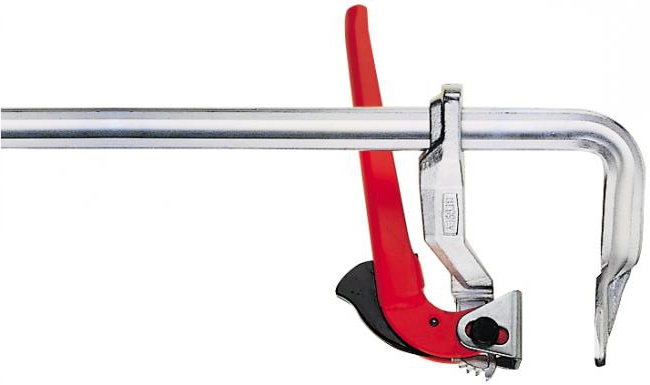 | Эргономичные рычаги Струбцина имеет натяжной и ослабляющий рычаги. Первый с порошковым покрытием, а второй, облицованный пластмассой, с защитой против скольжения. |