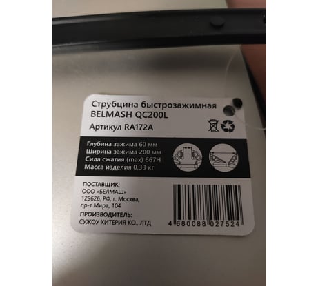 Струбцина быстрозажимная Белмаш QC200L RA172A