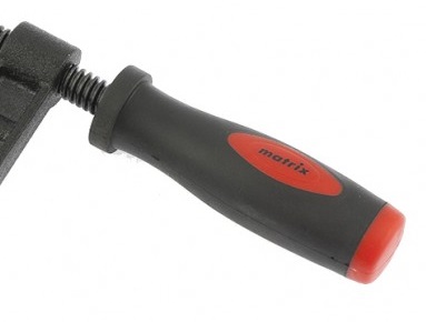 Удобство в работе Обрезиненная ручка струбцины 1000х120х1100 мм MASTER MATRIX 20410 удобно лежит в руке во время завинчивания/отвинчивания. |