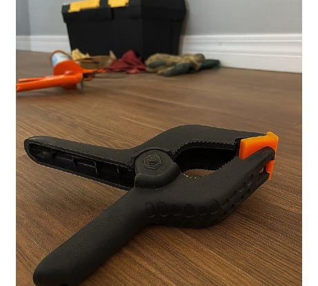 Крепкая такая вещица оказалась, зажим хороший, пластиковая ручка удобная, пользоваться приятно. Закрепляет плотно, деталь не двигается вообще. Я ею уже и полки выставлял, и рамы фиксировал, и даже полку навесную крепил, всё прошло гладко.