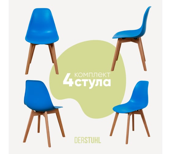Комплект стульев пластиковых DERSTUHL 4 шт Grand Wood Eames, синий, DSL010.007.4