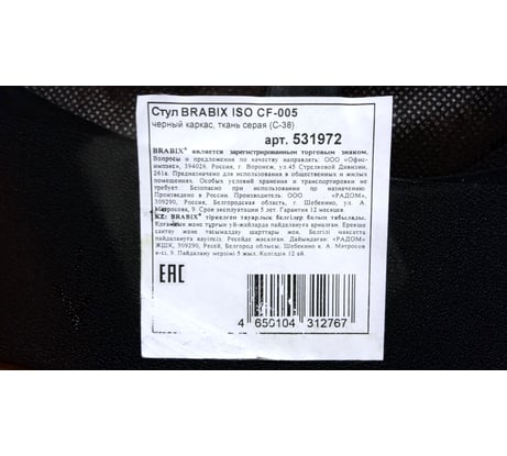 Технические характеристики стула BRABIX Iso CF-005 531973