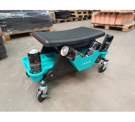 Прочный стул, подкатить мои 85 кг куда нужно не составляет проблем, есть два ложемента-органайзера что очень удобно в работе, так как все запчасти под рукой. Рекомендую
