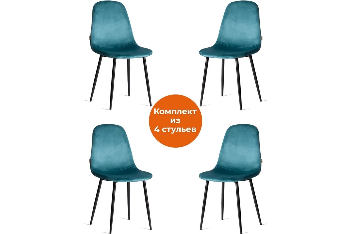 Стул Tetchair 4 шт BREEZE mod. JSC-58 Велюр/металл, 44x53x86 см, light blue светло-синий HLR60, черный 21206 предназначен для дома.