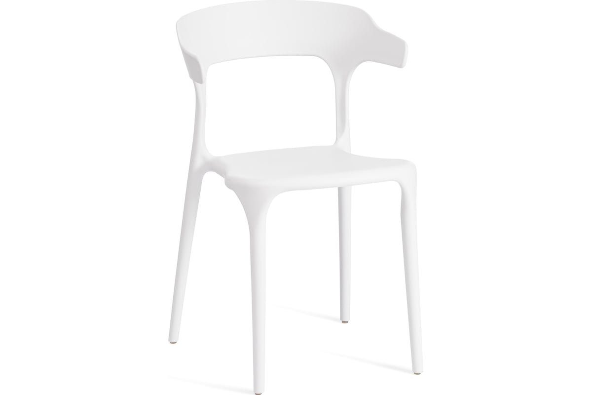 Удобное сиденье и спинка позволяют комфортно сидеть в течение длительного времени. Стул выполнен из прочного пластика белого цвета. Он практичен, надежен, способен выдерживать большие нагрузки, устойчив к воздействию влаги, температурным перепадам и прост в уходе.