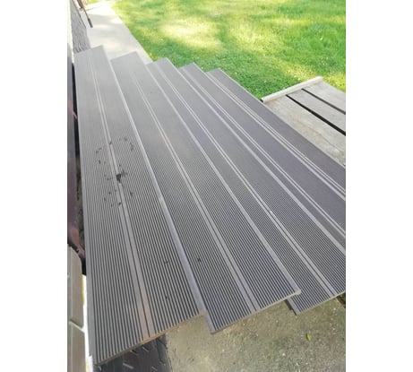 Хочу рассказать тем, кто будет покупать эти ступени, чтобы учли для себя при покупке, на фото этого не видно , лицевая сторона не совсем венге, она идет с серовато белым цветом, то есть не темная, а вот изнаночная сторона да, она темная как венге, и края темные. Наверное цвет шоколад будет точно темный.В живую не видела раньше, купила в интернет магазине по фото и описанию, так как знала цвет венге, и он нам подходил, но немного не то. Сам рисунок очень красивый, мелкая волна и смотрится хорошо. Толщину не замеряла, как пишут в отзывах, что идет меньше, но думаю так и есть, потому,что у нас совпало с террасой, а по идеи должно было быть выше , еще думали когда будем менять доску на террасе то что-то придумаем с супругом, чтобы совпало.Фото не могу приложить, не сфотографировала. Может позже.