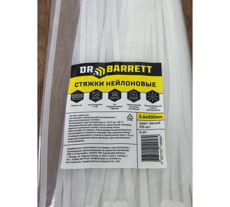 Отзывы о стяжках нейлоновых DR.BARRETT белых, 3.6x200 мм Ц0000037776