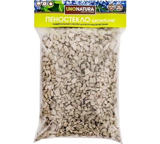 Субстрат пеностекло UNONATURA 2 л, 10-20 мм GP21020 – субстрат нового поколения с высоким показателем воздухоемкости и влагопроницаемости за счет пористой структуры. Подходит для орхидей и других растений.